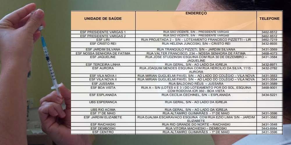 Agendamento inicia às 13h nas 19 unidades básicas de saúde do município