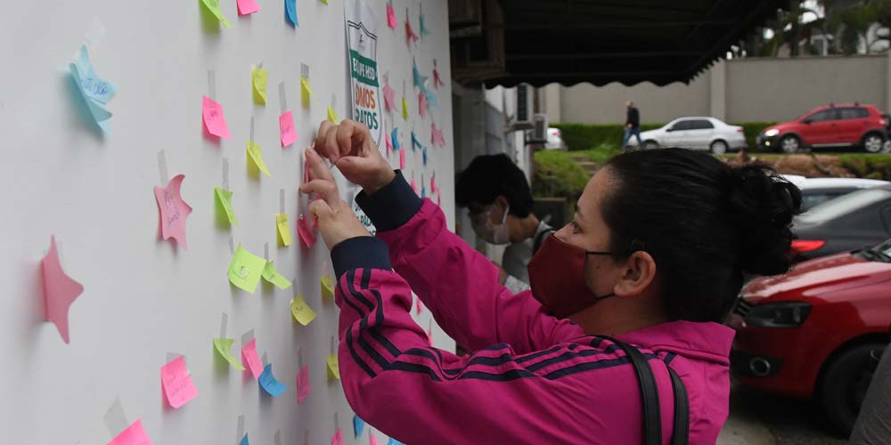 Fé, empatia e resiliência são alguns dos sentimentos demonstrados de forma espontânea pelos heróis do Hospital São Donato em um painel de positividade aos colegas. A elaboração iniciou na sexta-feira e foi concluída nesta segunda com a abrangência de todos que trabalham na entidade. Esta foi a forma que a Comissão de Humanização encontrou para aproximar as equipes neste período em que o contato humano tornou-se mais difícil, mas não impossível. Com o uso de capas para proteção, máscaras e o coração aberto, os colaboradores também receberam abraços quentinhos e cheios de afeto em retribuição.