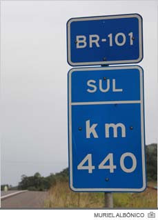 As placas devem conter a abreviação oficial da unidade de medida (km) e o número correspondente à distância, expresso em números inteiros ou frações decimais, para vias urbanas de trânsito rápido. A parte superior das placas, separada por tarja, pode conter uma legenda identificando o sentido do percurso, através do ponto cardeal correspondente, ou a identificação da via. Na BR-101 Sul, o DNIT instalou, a cada cinco quilômetros de pistas, o complemento da sinalização vertical indicando em que direção o usuário está: Sul ou Norte.
