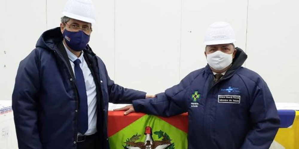 "Recebemos as doses agora pela manhã durante ato com o ministro da Saúde, Eduardo Pazuello, alinhado ao plano nacional de imunização. Ainda pela manhã, essa carga será recebida pelas equipes da Secretaria da Saúde, em Florianópolis, para separação e catalogação. Estamos iniciando a maior campanha de vacinação da história", informa o secretário de Estado da Saúde, André Motta Ribeiro.