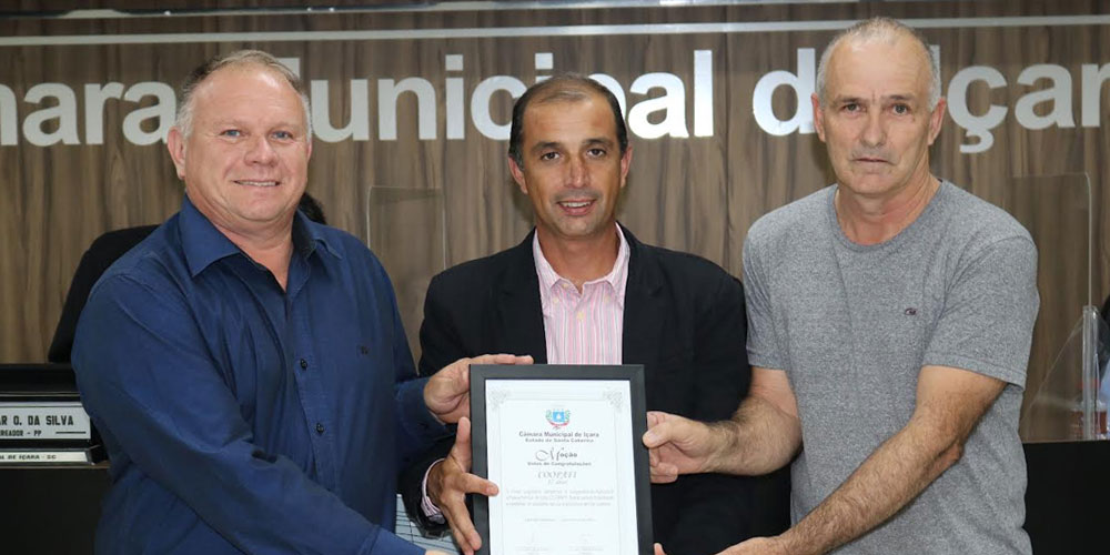 Os 17 anos de fundação da Cooperativa da Agricultura e Pesca Familiar de Içara (Coopafi), foram lembrados pela Câmara Municipal através de moção de congratulações. A homenagem foi entregue pelo proponente, o vereador Jairo Manoel da Silveira, o Jairinho (PSD), ao presidente da Coopafi, Fabiano José Bortolatto, na sessão ordinária desta segunda-feira, dia 17.