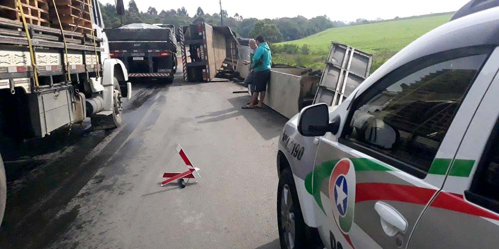 Uma carreta tombou na rótula entre a Rodovia Jorge Zanatta (Anel Viário) e a Rodovia Ângelo Valvassori por volta das 6h30 desta sexta-feira, dia 1. O veículo seguia na direção da Linha São João a Cocal do Sul quando ocorreu o acidente. A composição era conduzida por um motorista de 41 anos, que teve lesões leves no pé e no ombro, mas não chegou a ser encaminhado ao hospital.