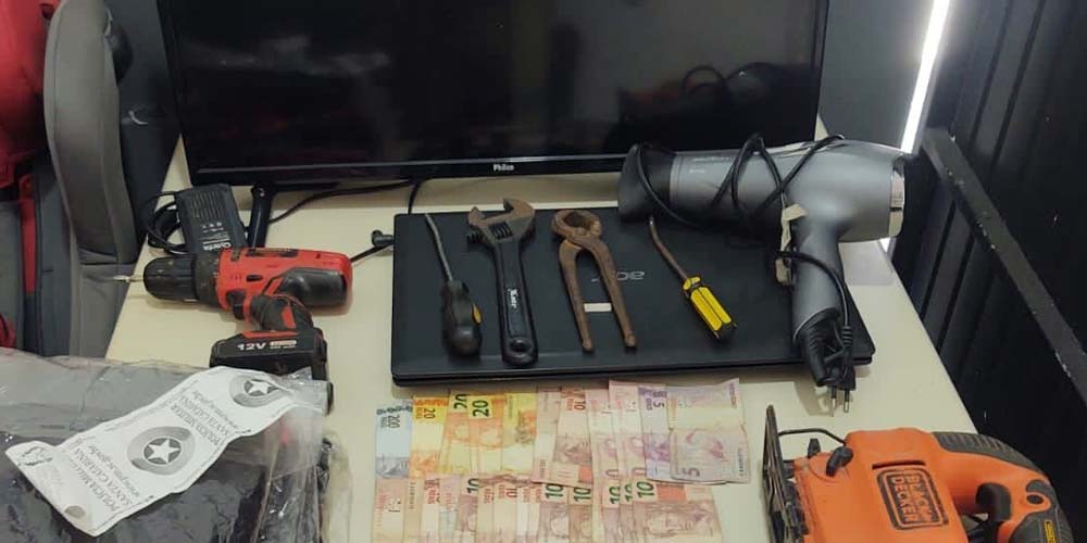 Após a abordagem, os criminosos informaram o paradeiro dos equipamentos que haviam tomado e tiveram apreendidos ainda R$ 480 em revista pessoal. No interior do veículo estavam também ferramentas para arrombamento e dois celulares utilizados para a comunicação dos ladrões. “Os homens foram entregues sem lesões na central de flagrantes junto com objetos utilizados na infração penal e com os objetos apreendidos do furto”, comunica a PM.