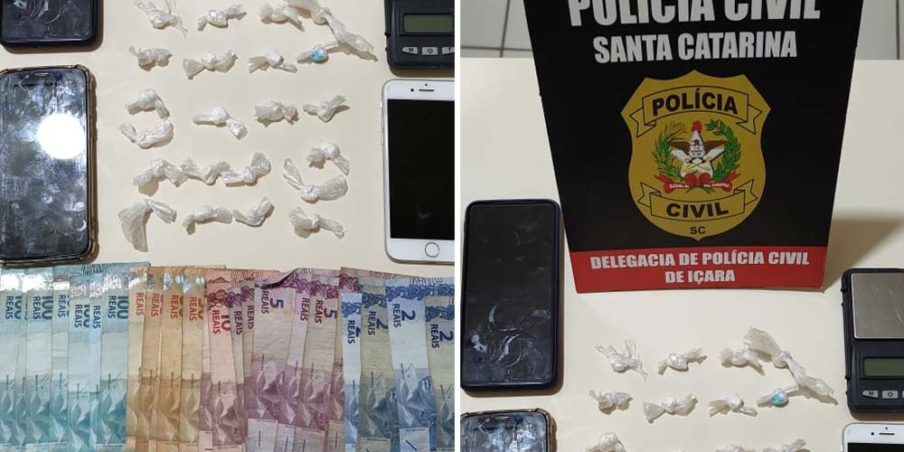 Um jovem de 25 anos foi detido no Centro de Içara por tráfico de drogas na tarde desta quinta-feira, dia 22. Em cumprimento a um mandado de busca e apreensão, os agentes da Polícia Civil estiveram no apartamento, onde encontraram 22 invólucros de cocaína e uma balança de precisão. Com o enquadramento pela comercialização de entorpecente, o rapaz foi encaminhado para a Central de Polícia.