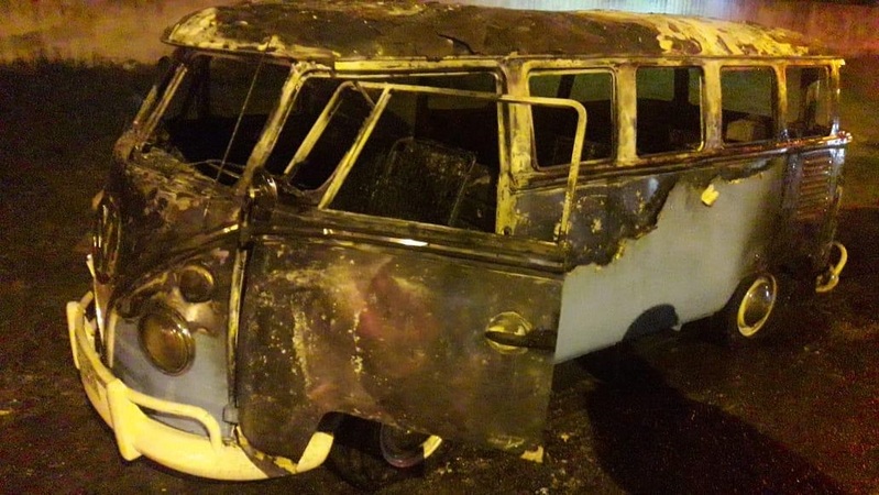 Uma Kombi, com placas de Birigui/SP, conduzida por homem de 25 anos, foi totalmente consumido pelas chamas, no bairro 1º de Maio, em Içara, neste domingo, dia 11.
