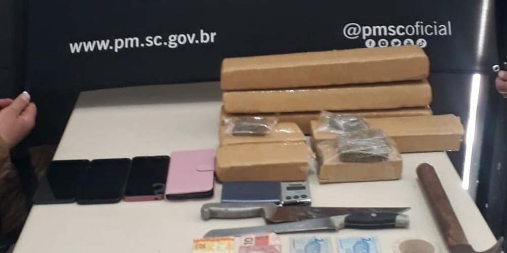 A Polícia Militar de Içara apreendeu 5622g de maconha em ação na manhã deste sábado, dia 10. A abordagem ocorreu na ICR-150, no bairro Nossa Senhora de Fátima, por volta das 10h. Conforme divulgado pela corporação, os policiais receberam informações que um masculino iria realizar a entrega de entorpecentes e que guardava outra quantidade em casa. Além da droga, foram recolhidos quatro aparelhos de telefone, uma balança, dois facões e R$ 34. A ocorrência resultou também em três pessoas detidas: um jovem de 19 anos e duas mulheres, de 17 e 50.