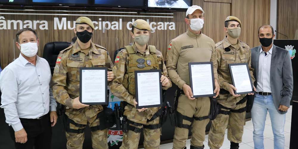 O cabo Douglas Jerônimo Bitencourt, os soldados Gabriele Ghisleri e Altobele da Silva Alves, e o policial militar rodoviário, soldado Daminelli, receberam congratulações pela bravura contra uma tentativa de suicídio. “Esse assunto está tornando um problema aqui no município. O Poder Executivo precisa olhar com mais atenção para essas pessoas, que com certeza estão precisando de ajuda”, avalia o propositor, vereador Jairo Manoel da Silveira (PSD).