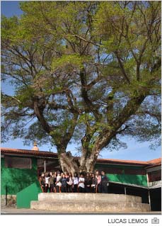 "Esta figueira faz parte da história da Escola Salete Scotti dos Santos. Durante tantos anos, ela acompanhou muita coisa. Foram tantos relacionamentos de amizade e namoros que aqui iniciaram e acabaram", exalta o diretor Max de Mello. Ainda segundo ele, o marco na vida de alunos e professores é resultado do respeito ao ambiente. A natureza se mantém em harmonia com o prédio devido ao cuidado na poda dos galhos e das raízes.