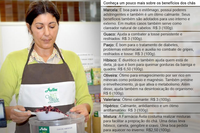Os benefícios dos chás são muitos. Um estudo realizado pelo American Journal of Clinical Nutrition em 2010, constatou que aqueles que consomem chá com mais frequência, reduzem as chances de desenvolver câncer no cérebro. A gerente de loja da Farmácia Ávila, de Içara, Mariléia Pizzetti, explica que os chás são utilizados como forma de prevenir e também de auxiliar no combate de doenças.