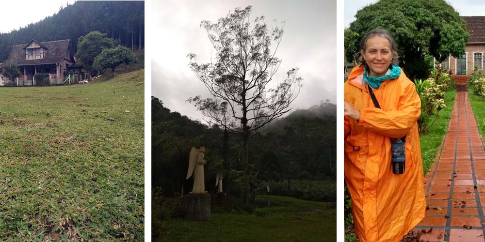 E já estamos no quinto dia caminhando, levantamos empolgadas e enfim colocamos roupas cheirosas novamente, graças a Sueli, que as lavou na máquina da sua casa, querida. Sim, não é possível lavar roupas todos os dias durante um caminho assim, leva-se poucas peças para não pesar na mochila, lava-se apenas peças intimas todos os dias e o restante vamos alternando o uso, até a oportunidade de lavar e colocar secar durante a noite, com sorte de tempo seco, as roupas secarão. Após o café farto, Sueli, nos levou de carro nos primeiros quilômetros, até onde recomeça a marcação de flechas do caminho além da vida urbana, muita subida ainda nos aguarda, mas também muita beleza natural, está ficando cada vez melhor.