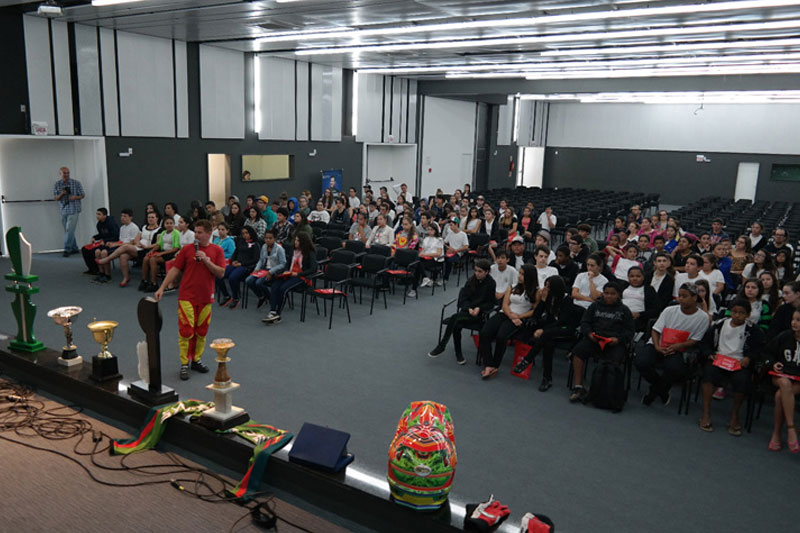 Os alunos da Escola Professora Maria da Glória e Silva e Alaíde Tabalipa foram recebidos na segunda edição do projeto “Escolas na Acic” nesta quarta-feira, dia 12. Os estudantes tiveram uma palestra motivacional com o multicampeão de bicicross Marco Aurélio Tocha. Além disso, visitaram a exposição de Arte Pictórica Medieval e Renascentista. As atividades envolveram ao todo 166 alunos também das escolas Doutor José de Patta e Lindolfo Collor, de Criciúma.
