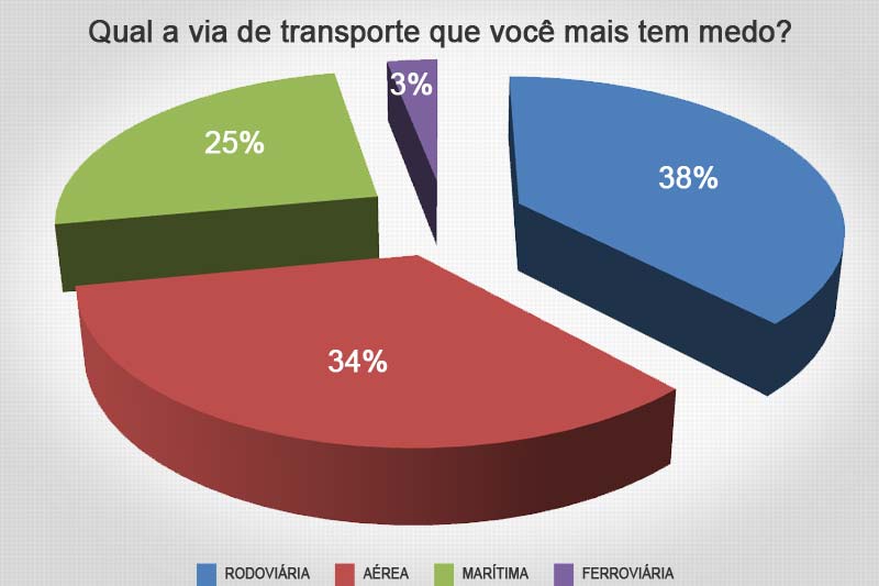Segundo a Administração Federal de Aviação nos Estados Unidos, a cada mil mortes, 228 são em decorrência de acidentes rodoviários e 0,45 em aeroviários. Entretanto, o medo dos usuários não é muito diferente. Conforme a enquete realizada pelo Canal Içara, 38% dos internautas temem usar veículos terrestres. Outros 34% indicam que o medo ocorre no ar. A pesquisa apontou também que 25% temem mais o mar e 3% as ferrovias. Ao todo responderam 69 pessoas entre os dias 8 e 15 de junho.