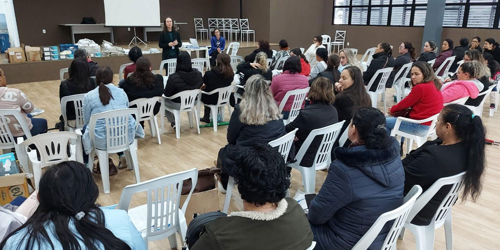 As agentes de serviços gerais responsáveis pela limpeza e preparação dos alimentos dos Centros de Educação Infantil (CEI) de Içara passaram por capacitação nesta sexta-feira, dia 24, no auditório Osvaldo Duarte no Paço Municipal Ângelo Lodetti. Pela manhã, o psicólogo Luís Claiton Ehlers falou sobre o relacionamento interpessoal e a autoestima, já a tarde foi a vez da psicóloga Gabryela Zoche conversar com as servidoras.