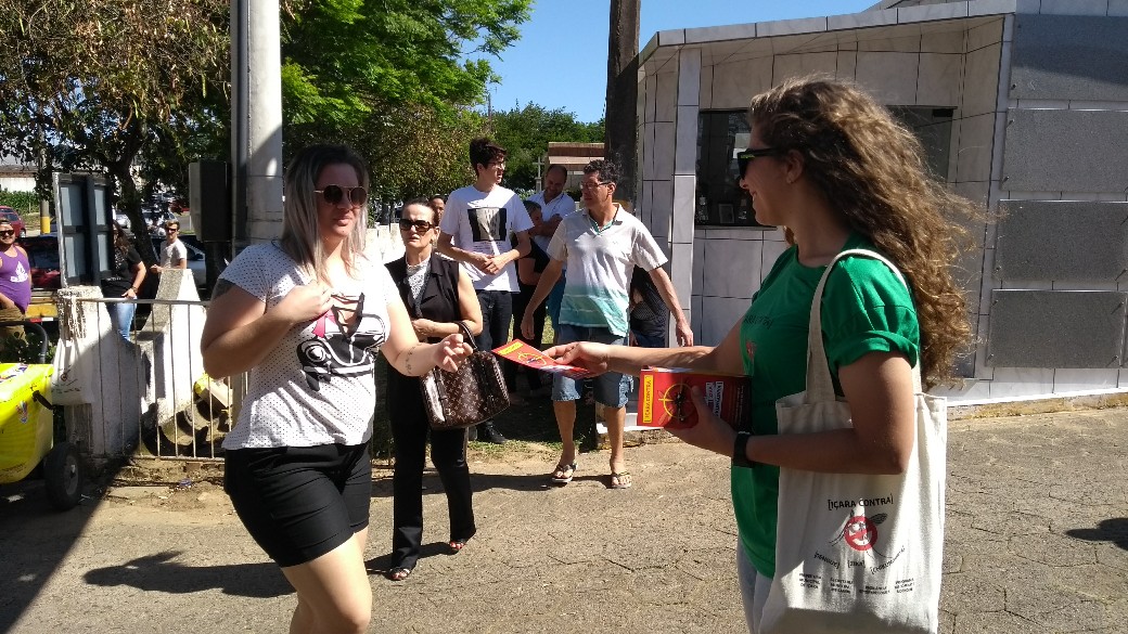 A proibição de vasos, floreiras e outros recipientes que não possuam condições de escoamento da água nos cemitérios foi alertada com panfletagem nesta quinta-feira, dia 2. A inutilização prevista em lei municipal vale desde 2016. A campanha contra o Aedes aegypti circulou os cemitérios do interior de Içara pela manhã e no Cemitério Bom Pastor a tarde.