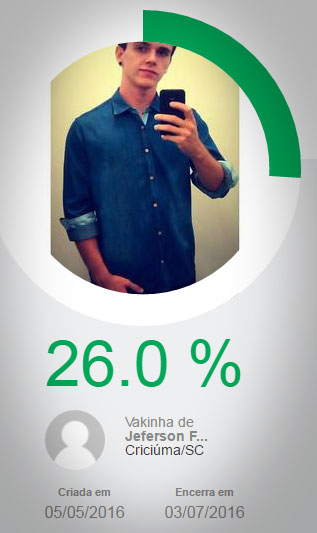 AJUDE: Para contribuir acesse www.vakinha.com.br ou deposite na conta-corrente 0155618 da agência 0345 do Bradesco. Outras opções podem ser consultadas pelo (48) 9130-5442.O acidente automobilístico que lesionou Jefferson foi registrado no dia 7 de abril. Ele estava de moto na Rodovia Paulino Búrigo (SC-445), onde um carro lhe cortou a frente. Na tentativa de desviar, acabou colidindo em outro veículo. O acidente causou fratura na vértebra, lesão na medula e consequentemente paraplégico. Ele passou por uma cirurgia no dia seguinte e colocou 12 pinos na coluna. “Ele está com a medula inflamada e isso impossibilita que se faça um prognóstico no momento”, informa a irmã.