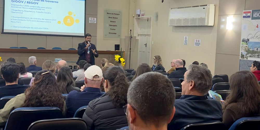 A qualificação dos Gestores Municipais de Convênios e Contratos foi o foco central da Oficina GMC 2025, realizada nesta terça-feira, dia 29, no auditório da Associação dos Municípios da Região Carbonífera (Amrec). O evento, promovido pela Caixa Econômica Federal, reuniu representantes das prefeituras da Amrec e também das associações dos municípios da Região de Laguna (Amurel) e do Extremo Sul Catarinense (Amesc).