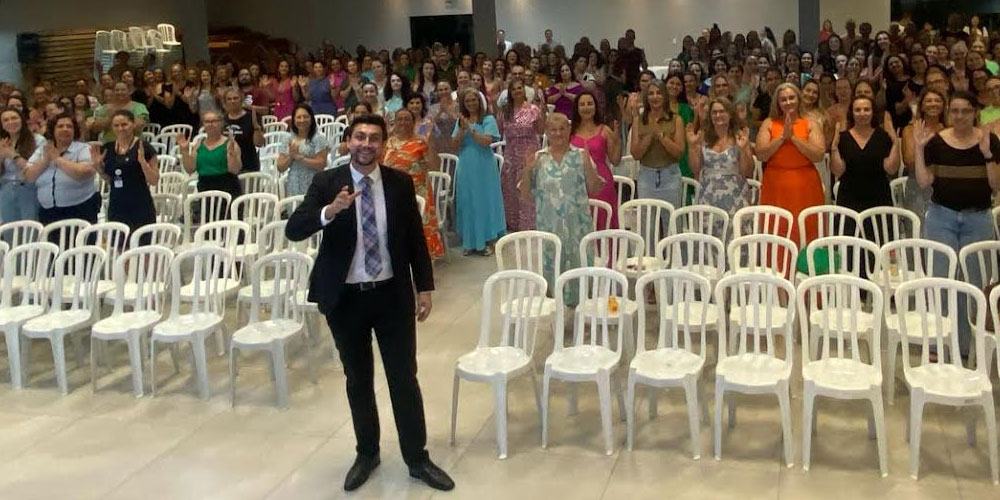 Começou mais um ano letivo para os professores da rede municipal de ensino de Içara. A recepção aconteceu com palestra motivacional de Jardel Beck no Salão Paroquial São Donato na noite desta quarta-feira, dia 7. O encontro com mais de 500 docentes teve também apresentação da Associação Coral de Içara e a posse de 33 gestoras escolares, responsáveis por 47 unidades de ensino. Ao todo, 7 mil estudantes do ensino infantil até os anos finais do fundamental voltarão às aulas no próximo dia 15.