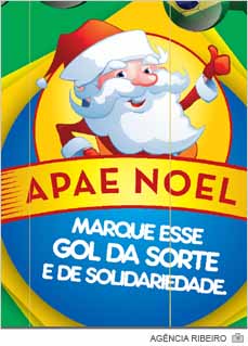 O Apae Noel 2013 inspirado na Copa das Confederações vai é bater um bolão em solidariedade. A iniciativa da Federação Nacional das Associações de Pais e Amigos dos Excepcionais consiste no sorteio de prêmios para arrecadação de recursos. Cada bilhete custa R$ 8. A Apae que tiver comercializado o cupom premiado também vai ser beneficiada. Além disso, do total arrecadado, 70% ficarão com as escolas e 20% para as federações estaduais. Os vencedores serão anunciados no dia 21 de dezembro através da Loteria Federal.