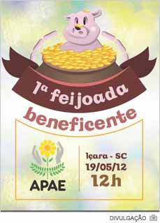 Um almoço solidário vai movimentar o pátio da Apae de Içara no dia 19 de maio. Será a primeira feijoada promovida pela escola. Conforme a presidente Emília Valvassori, o recurso completará os valores já arrecadados com o bazar. A intenção é substituir um dos veículos que faz o transporte dos alunos. Aos interessados em colaborar, as camisetas estão à venda por R$ 35. Em Içara elas podem ser adquiridas na própria instituição educacional, além da Loja Mury, Pavei Caça e Pesca e Posto Ipiranga. Já em Criciúma estão no Posto Central.
