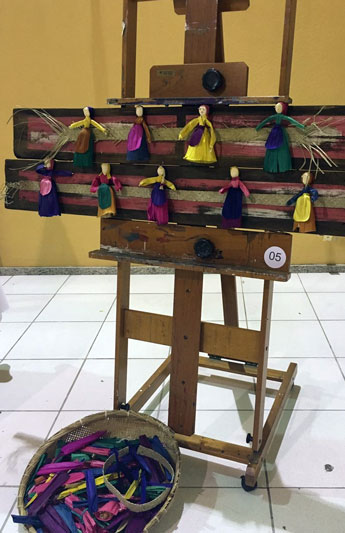 “Realizamos o trabalho em parceria com a professora Ana Sirlene. Após a pesquisa sobre o artesanato em palha de milho, cada aluno escolheu cores para tingir e, com mediação, produzir as bonecas”, detalha a professora de Artes da escola administrada pela Associação de Pais e Amigos dos Excepcionais de Içara, Bárbara Vitali Panattoi.