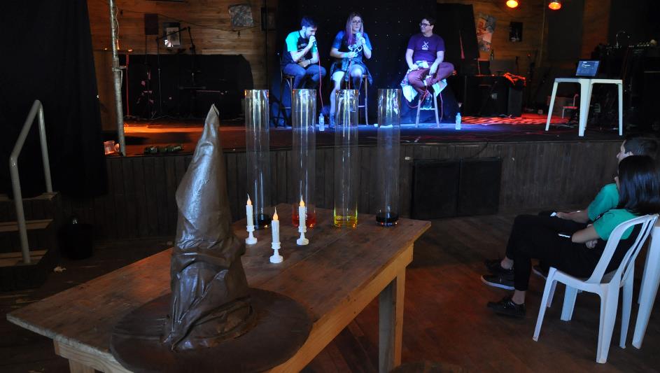 Num evento tribruxo, o assunto principal é inevitavelmente as obras de JK Rowling. Em Içara esse debate foi elevado a nível profisional neste domingo, dia 15. "Cada frase de Harry Potter abre a possibilidade de um conteúdo novo. Os livros são apenas a ponta de um iceberg", coloca o youtuber Renie Santos, do Expresso de Hogwarts. "HP é a minha maior influência literária e cinematográfica", acrescenta Bel Rodrigues.