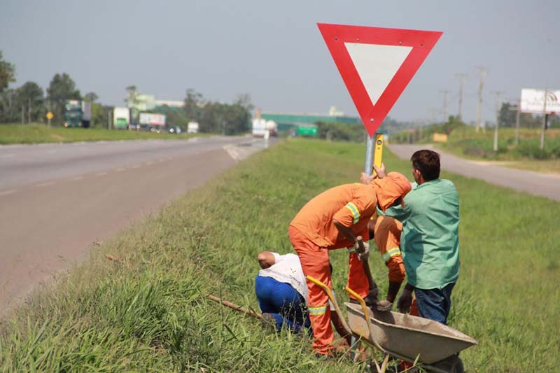 Até o final deste mês, o Departamento Nacional de Infraestrutura de Transportes vai instalar aproximadamente 180 novos elementos de sinalização vertical na BR-101 Sul. São placas, marcadores, marcos quilométricos e painéis para acréscimo ou substituição em ação complementar ao cronograma de conservação da rodovia federal. A instalação é dividida em duas frentes. Uma delas entre Laguna e Içara e a outra de Içara a Passo de Torres.