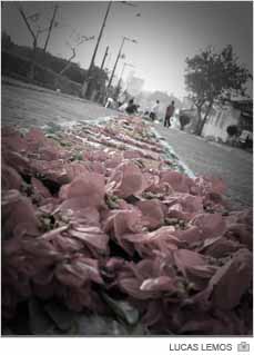 Durante o ano inteiro guardavam e secavam pó de café, tingiam serragem, encapavam fichinha de garrafa com papel de ourinho do cigarro para fazer os tapetes no dia de Corpus Christi. Levantavam cedo e cada um queria ter seu tapete mais bonito do que o outro. O padre descia o morro com o Santíssimo Sacramento exposto. Todos se ajoelhavam nas calçadas em sinal de respeito.