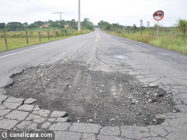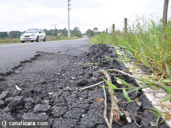 Após dois anos, a pavimentação na Rodovia Francisco Laurindo (ICR-364) já dá sinais de que precisa urgente de reparos. É que o asfalto não deu fim aos buracos. O maior deles chega a ter quase três metros de largura entre os bairros Barracão e Sanga Funda. Sem qualquer placa de sinalização por perto para a redução da velocidade, tampouco lombada, o temor é que ocorra um acidente de dimensões drásticas no trecho devido a inutilização de parte das pistas.