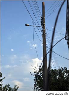 Pela segunda vez em menos de uma semana, fios foram arrebentados por veículos de grande porte na esquina da Rua Duque de Caxias com a Getúlio Vargas, no Centro da cidade. A reincidência ocorreu na segunda-feira, dia 2, e até agora os cabos de telefonia ainda estão amontoados na calçada. Para evitar acidentes, moradores ergueram a rede afetada. Isto não havia sido necessário no caso anterior porque o conserto foi realizado em menos de 24h.