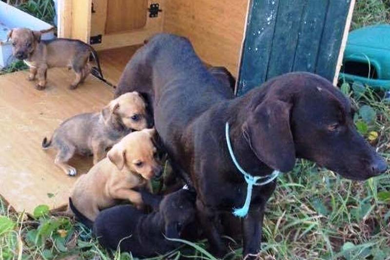 Cadelinha é abandonada com oito filhotes