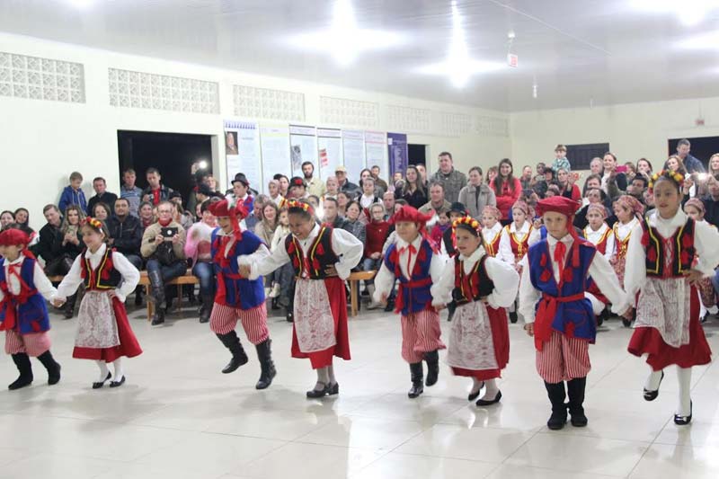 Dança e música completaram o café polonês na comunidade de Novo Caravaggio na noite de quarta-feira, dia 24. Todas as atividades ficaram por conta das escolas Ignácio João Monteiro e Professora Maria Barcelos Puzinski. Ambas são participantes do projeto Etnia na Escola. O evento apresentou também as atividades realizadas nas aulas de artes, nos ensaios musicais e na conversa com os descendentes.
