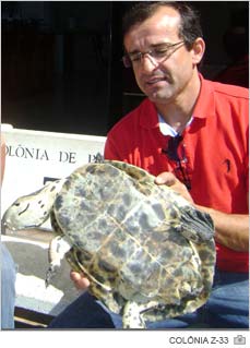 Um cágado de aproximadamente 40cm foi achado numa das vias públicas mais movimentadas do Rincão nesta quinta-feira, dia 26. O animal estava na Rua Paraná, no centro do balneário. Conforme o presidente da Colônia de Pescadores Z-33, João Picollo, a entidade foi acionada por volta das 10h e encaminhou o quelônio para o habitat natural. "Levamos de volta para a Lagoa do Rincão", completa.