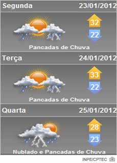 Nesta segunda-feira prevalece o Sol, calor e pancadas isoladas de chuva com descarga elétrica entre tarde e noite. Na terça, presença de Sol em todas as regiões de Santa Catarina. A partir da tarde a nebulosidade aumenta com pancadas isoladas de chuva, descarga elétrica, risco de temporais isolados com rajadas de vento e queda de granizo entre tarde e noite, devido à aproximação de uma frente fria.