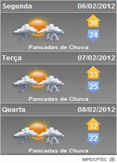 De terça a quinta-feira persiste ainda a condição de tempo quente com presença de Sol entre nuvens e pancadas isoladas de chuva com descargas elétricas isoladas, especialmente entre tarde e noite em Santa Catarina. Risco de temporal e granizo isolado também na terça-feira.