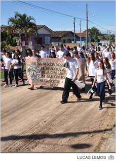 "Resolvemos fazer esta caminhada próxima a Páscoa pois consideramos que é um período de reflexão e que inspira a paz. A caminhada surgiu também pela necessidade de aproximar a comunidade e a escola. Esta união já resultou em uma considerável melhoria no ambiente educacional. Essa busca pela paz é tratada dentro de sala de aula também com o combate ao bullying e palestra sobre drogas", coloca a diretora Ana Paula Conti.