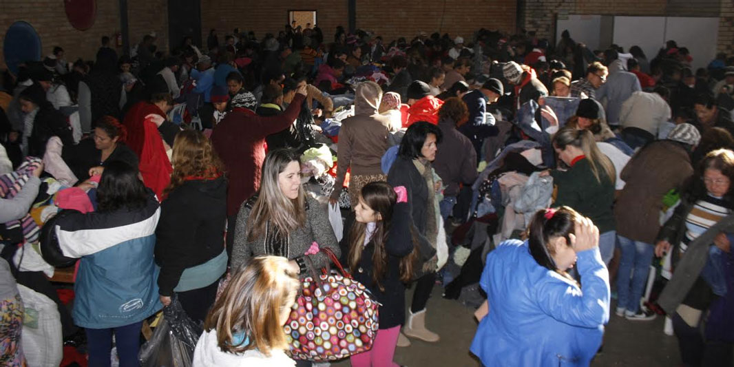 Aproximadamente 40 mil peças de vestuário foram colocadas para doação no Centro de Eventos da Praça do Imigrante na manhã deste sábado, dia 11. O volume obtido com a campanha do agasalho da Associação Família Feliz e do departamento de Fomento às Atividades Inclusivas do Município atendeu neste ano mais de 400 famílias.