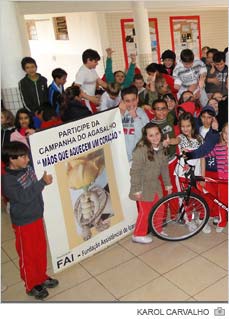 A campanha "Mãos que aquecem um coração" premiou três escolas nesta quarta-feira, dia 24. Todas foram recordistas na coleta de agasalhos em 2011. E pela mobilização que fizeram na iniciativa da Fundação Assistencial de Içara (FAI), receberam uma bicicleta de cada.