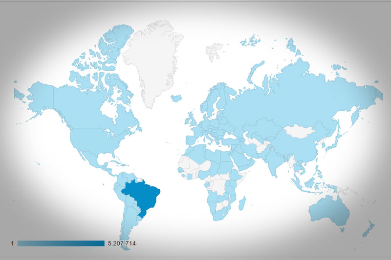 Desde 2006 foram mais de 12,9 milhões de páginas vistas e 1,5 milhão de usuários. Nem todos estavam no Brasil. Os acessos tupiniquins foram a maioria. Somaram 96,96% do tráfego. Os Estados Unidos ficaram em segundo lugar com 1,23%. Além disso, o site chegou a outros 154 países dentre 195 que são reconhecidos pela Organização das Nações Unidas. Ou seja, falta pouco para chegar a todos os cantos do mundo.