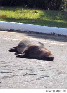 Capivara morta na pista
