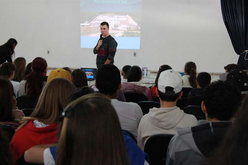 Um paralelo da vida de pessoas encarceradas foi realizado para aqueles que desfrutam da liberdade. A comparação foi motivada pela curiosidade e questionamentos dos adolescentes da Escola Paulo Rizzieri nesta terça-feira, dia 3. O debate sobre Cárcere Privado foi escolhido como parte do projeto Família em Ação e das ações alusivas aos 50 anos da escola. Pela manhã a unidade municipal recebeu o diretor do Presídio Santa Augusta, Jovino Bagio Zanelato. À tarde foi a vez do diretor da Penitenciária Sul, Deivison Querino Batista.