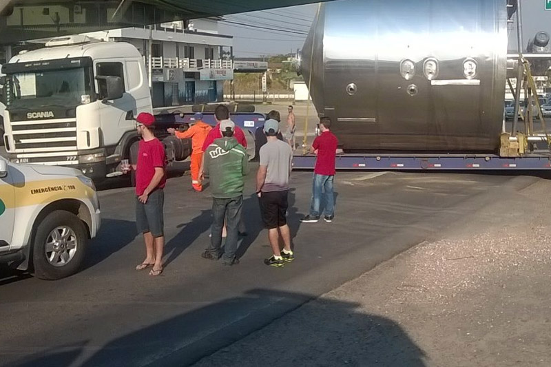 A Rodovia Deputado Paulino Búrigo (SC-445) foi fechada por uma carreta por volta das 15h deste sábado, dia 13. O veículo de Porto Alegre seguiria para São Paulo com um tanque para a produção de cerveja. Com receio de que não passasse pelo viaduto na BR-101, o motorista optou pelo desvio no bairro Jardim América. Mas encalhou ao atravessar a rodovia devido a diferença entre a pista e os acostamentos. O bloqueio foi removido após duas horas com o auxilio de um guindaste.