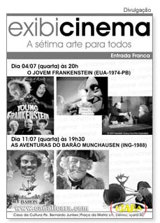Com a exibição dos filmes Casa da Cultura pretende levar também ao público infantil a arte do cinema. Trata-se de seções alternativas, apresentadas com um DVD e um DataShow, mas que para nossa cidade vale a pena por não ter um local com exibições de cinema.