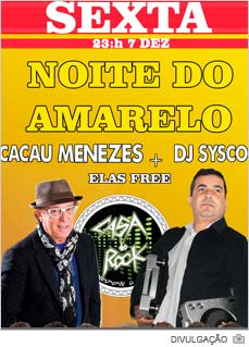A Casa do Rock vai ter a Noite do Amarelo nesta sexta-feira, dia 7. O nome da festa é em referência a participação do DJ Cacau Menezes. Além dele, participarão da balada a banda Matusa e o DJ Sysco. As mulheres terão acesso gratuito. Já aos homens, os ingressos custarão R$ 20 até meia-noite.