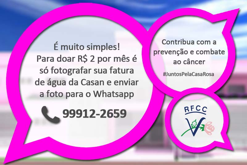 Para ajudar é simples. Basta fotografar a fatura de água e enviar para 99912-2659. "As contribuições podem ser realizadas por consumidores da Casan em todo o estado. Queremos iniciar os preparativos do terreno ainda no primeiro semestre deste ano. Estamos em fase de orçamentos para a composição da estrutura pré-moldada”, ressalta. A Casa Rosa funcionará no bairro Primeiro de Maio junto com a Associação de Mulheres Amigas do Peito e o Bercinho dos Anjos. “Nossa ideia é estender os cuidados também aos homens”, acrescenta Andrea.