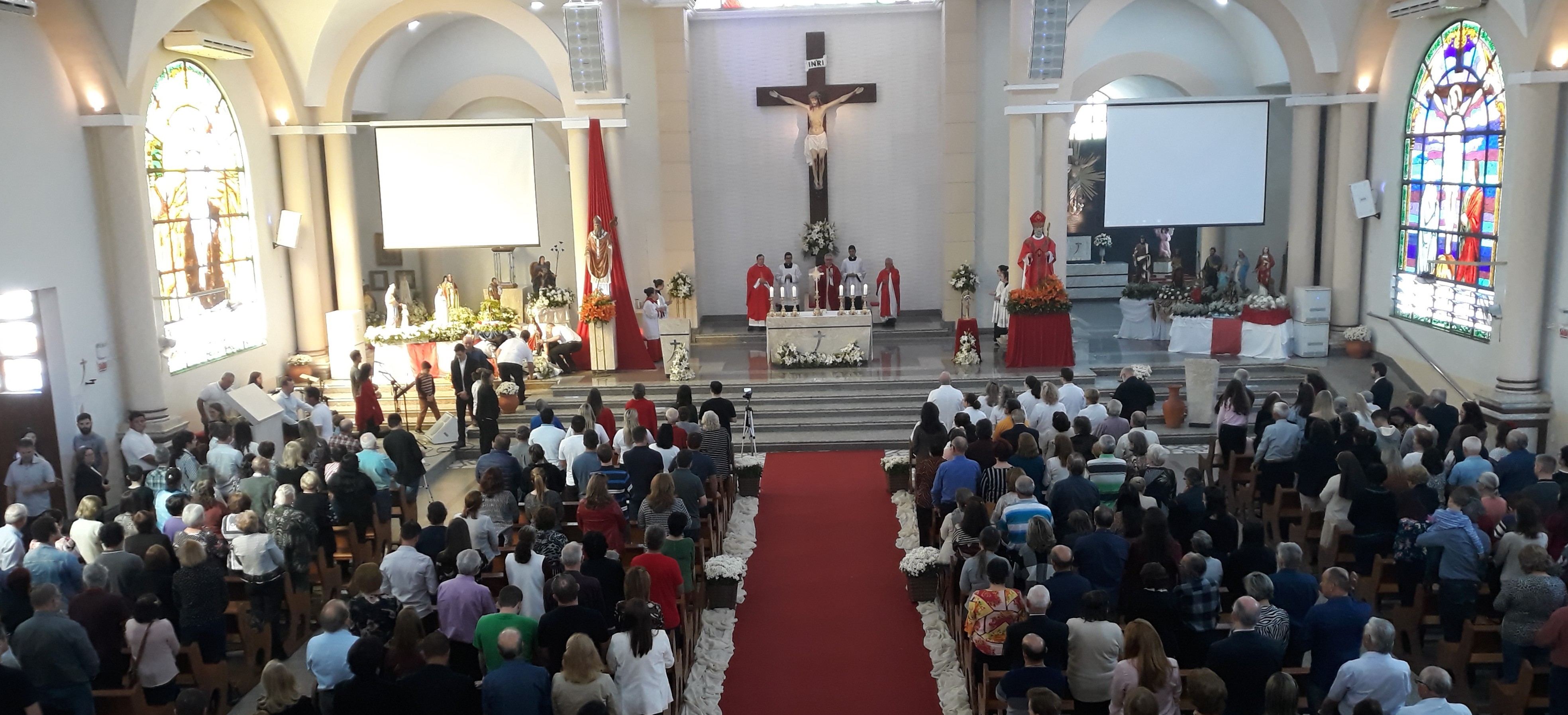 O dia começou com uma alvorada festiva no Centro de Içara. E, ainda pela manhã, imagens dos padroeiros de 19 comunidades foram reunidas na matriz da paróquia em celebração a São Donato nesta quarta-feira, dia 7. “Nosso padroeiro visitou todas as capelas e hoje foi a vez delas se fazerem presentes", indica o pároco Antônio Rossi. “Não dá para ser cristão de forma isolada. Vivemos em comunidade”, completa o padre Wilson Buss.