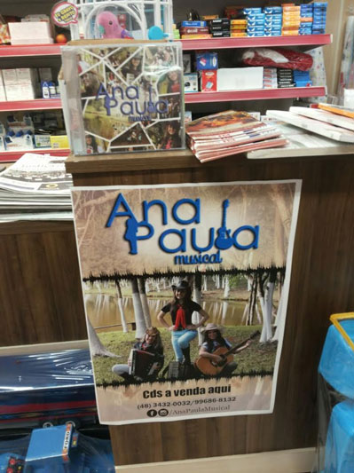 Depois de meses de preparação, já está disponível para venda o CD 100% Alegria, do Ana Paula Musical. O álbum pode ser encontrado por R$ 20 no Dalmolin Center Som, na Game Mouse e na Loja Otomar, ambos em Içara, além do Restaurante Século XXI, em Criciúma. O trabalho também pode ser requisitado para envio via Correios, neste caso, através do telefone (48) 3432-0032 ou 9 9686-8132.