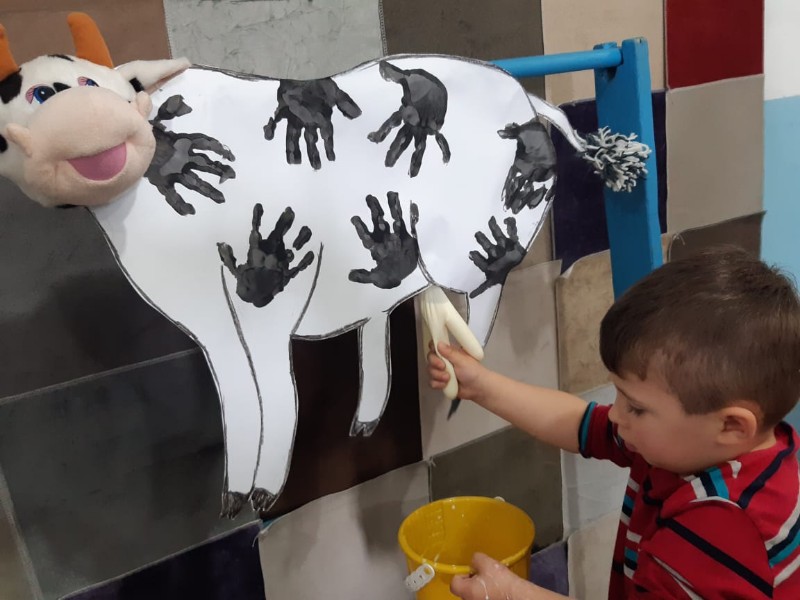 Entre as atividades, a professora confeccionou uma vaca de papelão para exemplificar de forma didática como ocorria o processo. “Com materiais como papelão e luvas plásticas desenvolvemos o animal, para mostrar de forma lúdica como funciona a retirada do leite”, acrescentou.