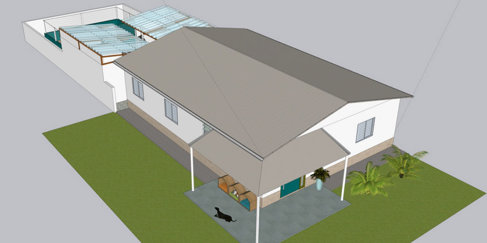 Os serviços incluem ainda a ampliação do prédio, de aproximadamente 16 metros quadrados, sendo uma área externa coberta, para abrigo no hall. Nos fundos, serão construídos três canis, um gatil e um depósito de rações, resultando em aproximadamente 32,47 metros quadrados.