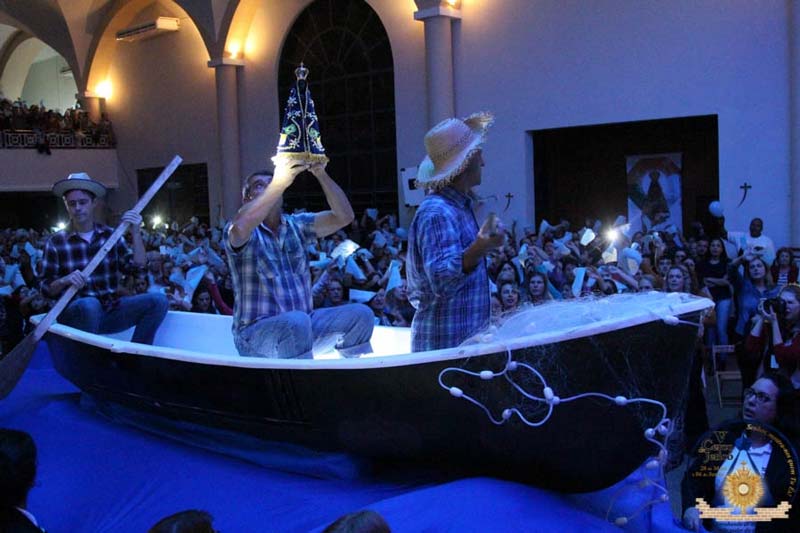 O corredor principal da Igreja São Donato se transformou em um rio para a passagem dos pescadores com Nossa Senhora Aparecida. Também foi caminho para o padroeiro e as caixas que receberão os pedidos, agradecimentos e ofertas no Cerco de Jericó a partir deste domingo, dia 29. A primeira celebração ocorreu com a primeira volta da Arca da Aliança pela queda das muralhas através do poder das orações, neste ano, voltadas ao ano mariano.