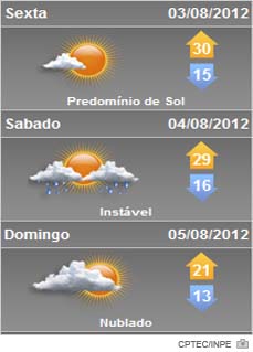 No domingo surge o Sol com algumas nuvens no Oeste e Meio Oeste. Nas demais regiões o tempo permanece instável, com nebulosidade e chuva pela manhã, melhorando no decorrer do dia com a chegada de uma massa de ar seco e frio. Temperatura amena em todas as regiões.